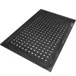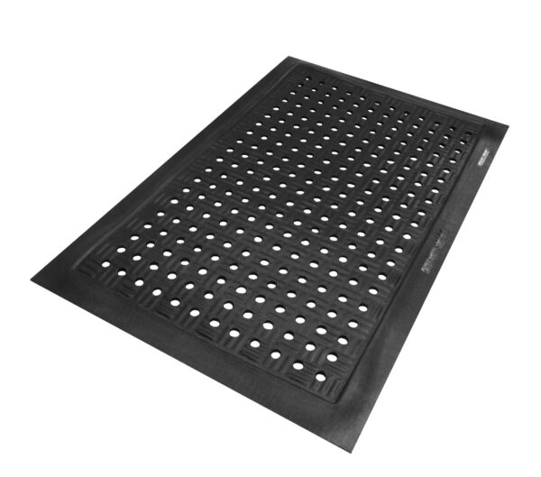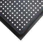 The ComfortHub Mat is 7/16″ thick and constructed from nitrile rubber. It features an anti-microbial treatment that provides lifetime protection from odors and degredation.The edges are beveled to provide a safe transition from the floor to the mat, and it is certified high-traction by the National Floor Safety Institute (NFSI).