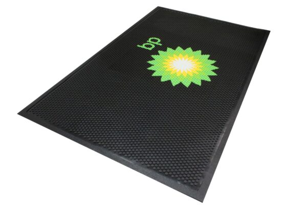 UltraScrape Outdoor Logo Mat feature your custom logo or artwork overlaid onto a UltraScrape mat. Multi-color images are created by molding a digitally printed polymetric material into the durable nitrile rubber surface of the mat.